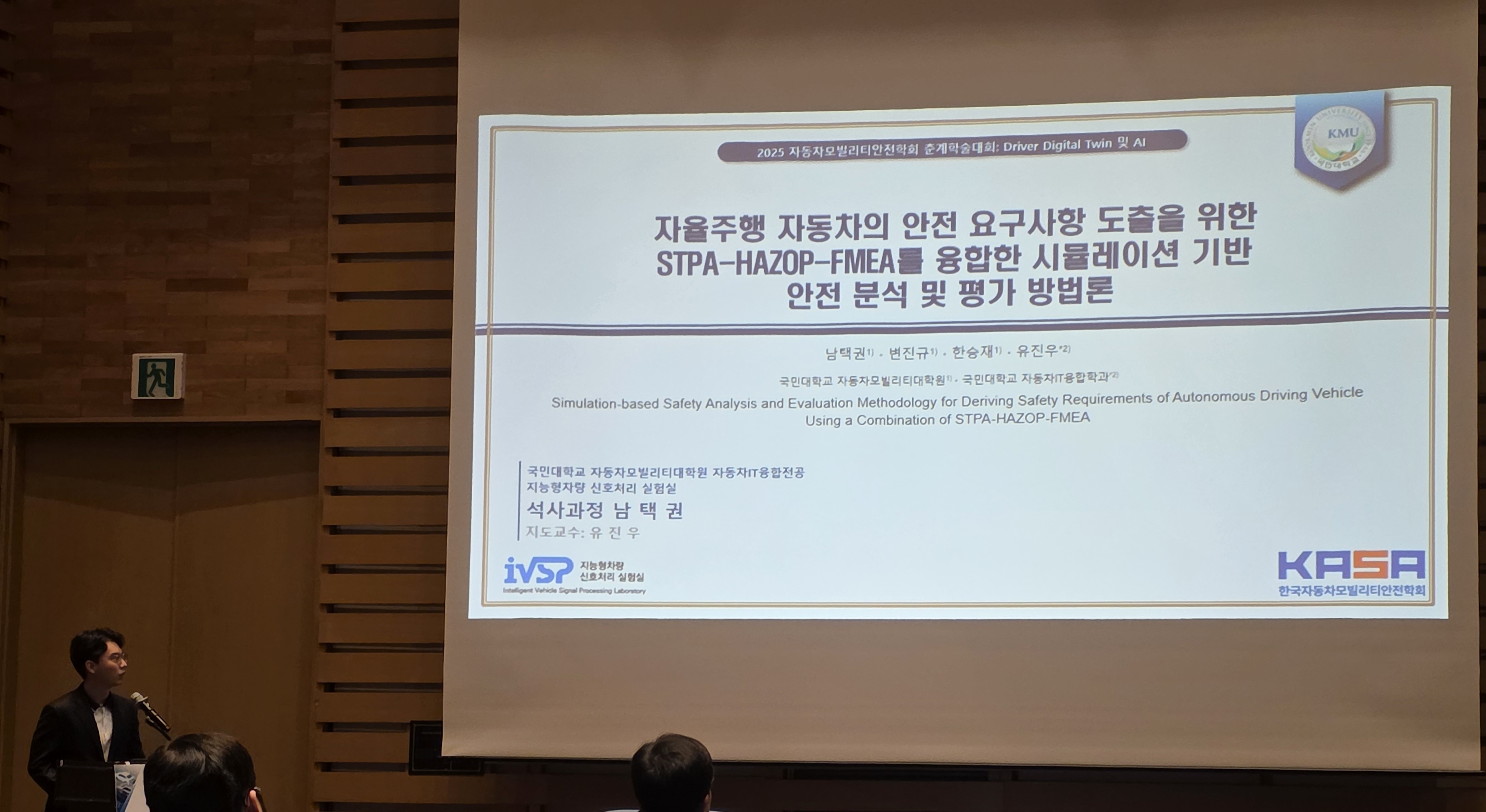2025년 한국자동차모빌리티안전학회 춘계국제학술대회에서 최경진(박사과정)이 과제발표를 그리고 남택권(석사과정), 이수현(석사과정)이 구두발표를 진행하였습니다.