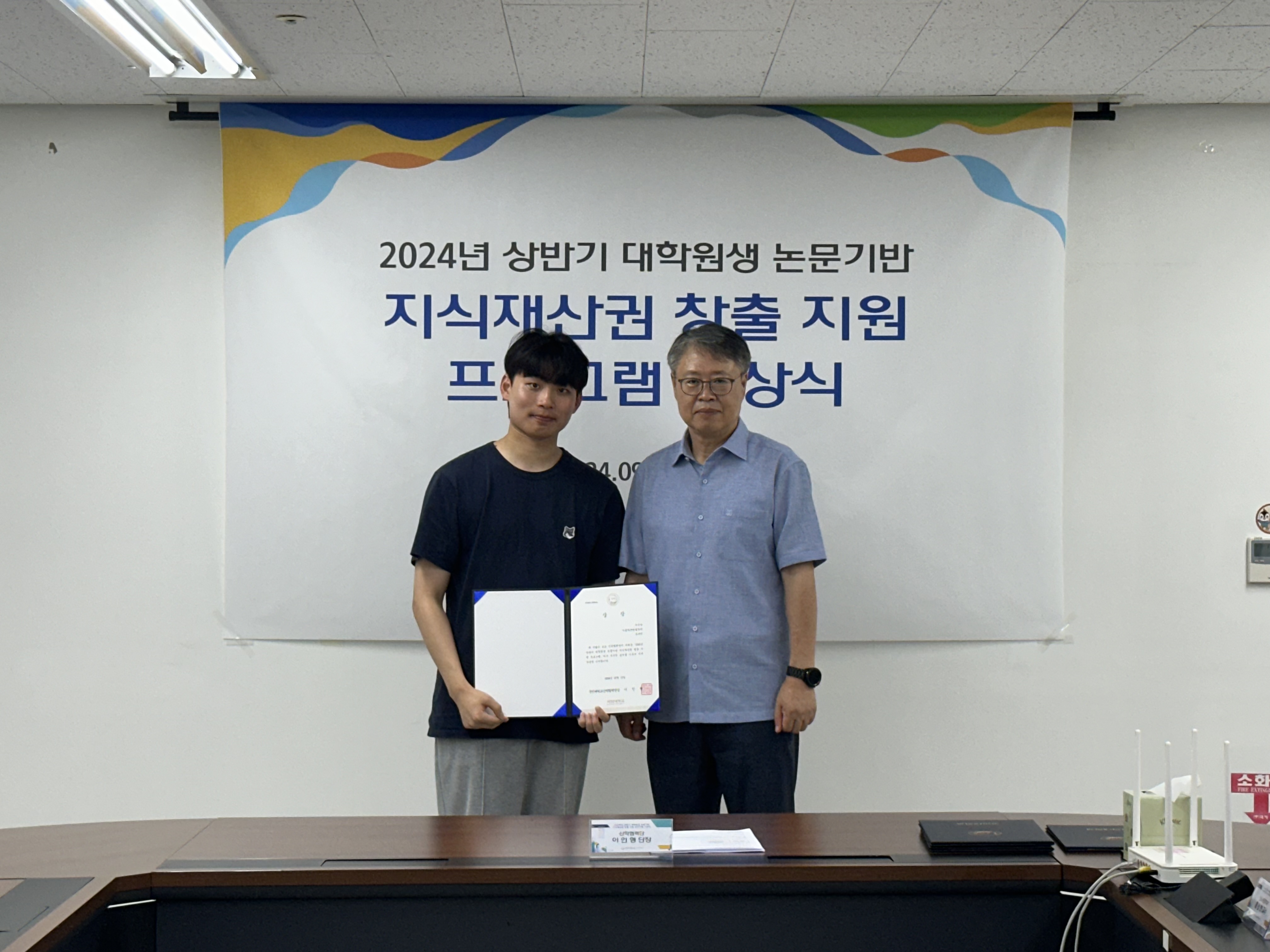 2024년 상반기 대학원생 논문기반 지식재산권 창출 지원 프로그램에서 유다연 석사과정(우수상)을 대신하여 원종빈 석사과정이 수상하였습니다.